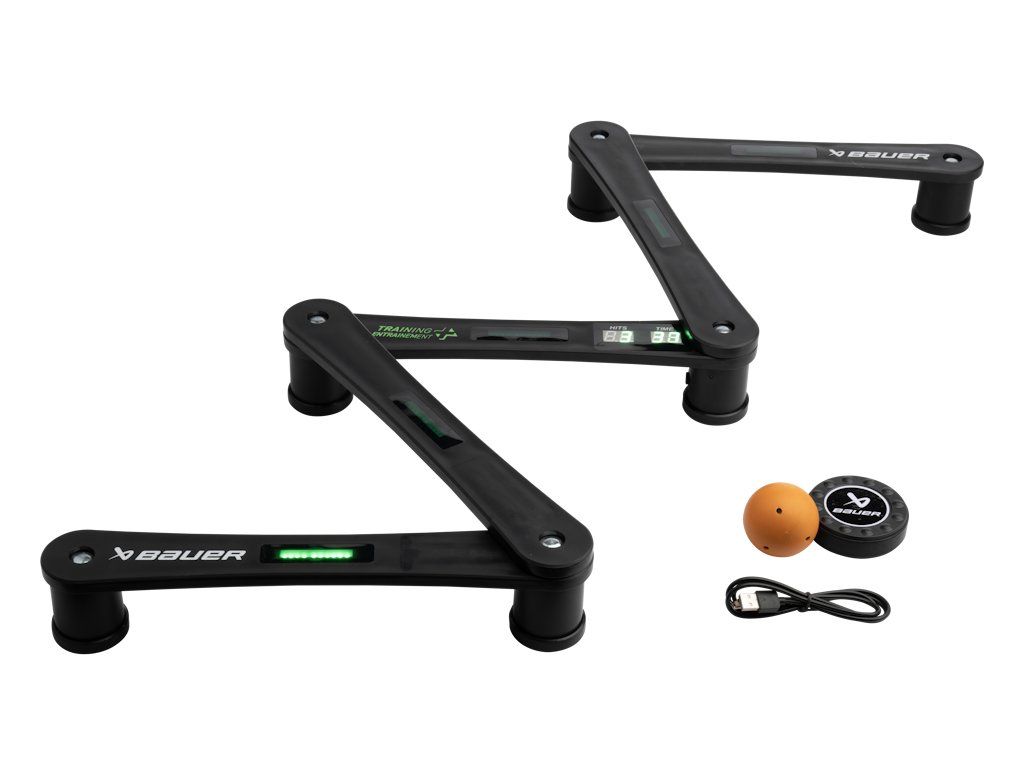 Zručnosti s hokejkou sú pre každého hráča alfou a omegou jeho hokejovej osobnosti. Preto stickhandling často a poctivo trénujte - a navyše sa pri jeho precvičovaní spoľahnite aj na moderné technológie. Digitalizovaná tréningová konštrukcia Bauer Stick Handling Digital Reactor Stick Handling Trainer vám bude v tomto ohľade dokonalým sparing partnerom. S konštrukciou efektívne precvičíte stickhandling – či už s pukom, alebo s loptičkou. 5 sekcií celkom vám umožňuje stavať rôzne dráhy a vlastné kombinácie. S dvoma sekciami napríklad pohodlne vytvoríte dráhu v tvare písmena T či písmena L. Vďaka variabilným možnostiam výstavby rôznorodých tréningových dráh sa nielen precvičíte, ale aj zabavíte. V útrobách konštrukcie sa nachádzajú senzory, ktoré spolupracujú s elektronickým pukom či loptičkou (oboje je súčasťou balenia). Všetky získané dáta si tak môžete po tréningu stiahnuť a zanalyzovať si, ako vám to šlo. Elektronika vám dáva možnosť nastaviť si časovo obmedzené tréningy a ďalšie špeciality, ktoré vám hokejový tréning spestrí a zefektívnia. Napríklad budete môcť lepšie precvičovať postreh a reakčnú dobu. Konštrukciu môžete umiestniť na ľad, rovnako ako na ľubovoľný typ povrchu. Ľahko sa prenáša, rozkladá a skladá. Môžete tak prakticky trénovať kedykoľvek a kdekoľvek - akonáhle dostanete chuť, alebo máte trochu času, stačí ju len zobrať a môžete vyraziť na svoje obľúbené trénovacie miesto.Dodatočné parametre