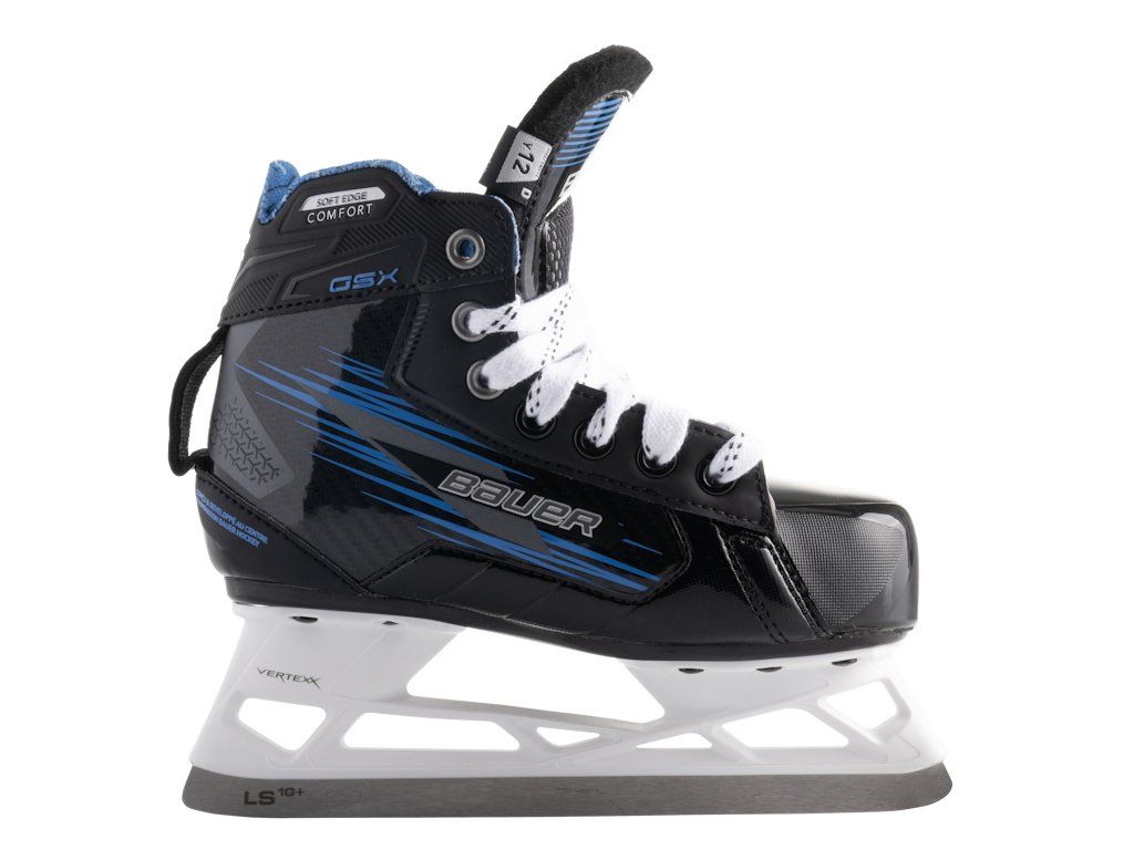 Brankárske korčule BAUER GSX s voľnejším a širším strihom pre čo najväčšie pohodlie sú ideálnou voľbou pre mladších, začínajúcich alebo hobby brankárov. Vďaka STANCEFLEX Quarter je korčuľa schopná sa viac ohýbať, čo znamená, že v bránkovisku budete vždy ohybný a v pohodlí.Použili sme náš obľúbený VERTEXX Edge Holder, vďaka ktorému si nôž dokážete vymeniť len jedným kliknutím. Teraz už po prvýkrát aj na vo verzii YOUTH! Korčuľa obsahuje silný a ľahký nôž LS1G.Dodatočné parametre
