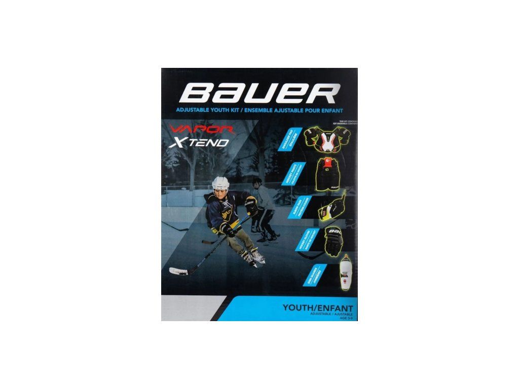Nový detský Vapor Xtend Kit je najideálnejšou voľbou pre najmenších začínajúcich hokejistov. Set je pre deti od 3 do 9 rokov. Novinkou sú jednoducho nastaviteľné časti výstroja. Každú jednu časť dokážete manuálne zväčšiť a prispôsobiť. Staré sety vo veľkostiach S M L sú už minulosťou. Teraz máte všetky 3 veľkosti v jednom sete. Set sa predáva bez tašky.