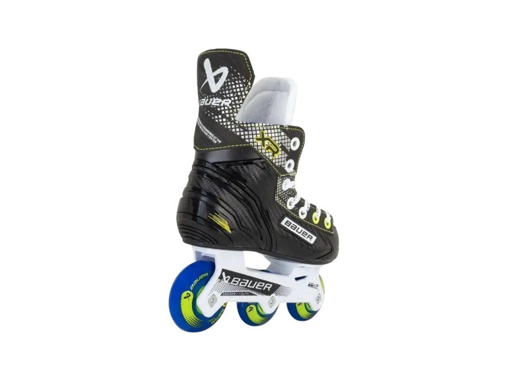 Kolieskové korčule Bauer XR budú na rekreačnej úrovni skvelou voľbou pre všetkých fanúšikov korčuľovania. Majú konštrukciu vhodnú ako pre začiatočníkov tak aj pre pokročilých korčuliarov , ktorá vám pomôže zlepšiť techniku jazdy. Hrubé chrániče členkov a mäkká podšívka z mikrovlákna sú navrhnuté tak aby vám poskytli čo najväčšie pohodlie či už trávite čas voľným korčuľovaním alebo inline hokejom. ✅ Detské kolieskové korčule Bauer XR vo veľkosti YTH majú 3 kolieska. ✅ Nový jednodielny podvozok FLEXLITE , ktorý je takmer o 50% ľahší ako jeho oceľový predchodca a jeho inšpiráciou bol holder PowerFly. ✅ Kolieska Bauer Street (tvrdé) v nastavení Hi-Lo , dve menšie kolieska vpredu a dve väčšie vzadu pre udržanie v predklonenom postoji pre lepšiu stabilitu. ✅ Ložiská ABEC-5 , ktoré ponúkajú dobré jazdné vlastnosti a nízky valivý odpor. ✅ Anatomický tvarovaný jazyk a pohodlné penové vnútro v kombinácií s modernými modrými a žlto-zelenými prvkami. ✅ Zaväzovanie pomocou šnúrok je dlhodobo známe ako najlepšia forma fixácie chodidla v korčuli.Dodatočné parametre