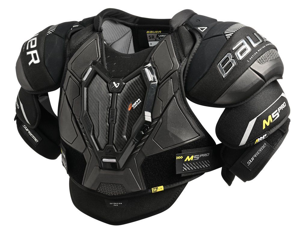 Buďte na ľade v bezpečí a pohodlí s novou vestou Bauer Supreme M5 PRO. Rovnaká technológia ako pri chráničoch MACH vám poskytuje flexibilitu, pohodlie a ochranu, ktorú potrebujete. Chrániče s nízkym profilom, ktoré vám umožňujú prirodzený pohyb ramien a rúk. Ani pri veste Supreme M5 PRO sme nezabudli na CURV kompozit v oblasti hrudnej kosti, vďaka čomu vás udrží v bezpečí bez obmedzovania vašej mobility. Použitím HYPERLITE peny po celých častiach vesty sa budete cítiť na ľade ako by ste na sebe nič nemali. Vďaka Thermomax+ Liner sa budete cítitť fresh a v suchu počas všetkých troch tretín. Model Supreme M5 PRO je ideálny pre hráčov, ktorí trénujú 2-3 krát týždenne. Vestu Supreme M5 PRO môžeme zaradiť do strednej úrovňovej kategórie.