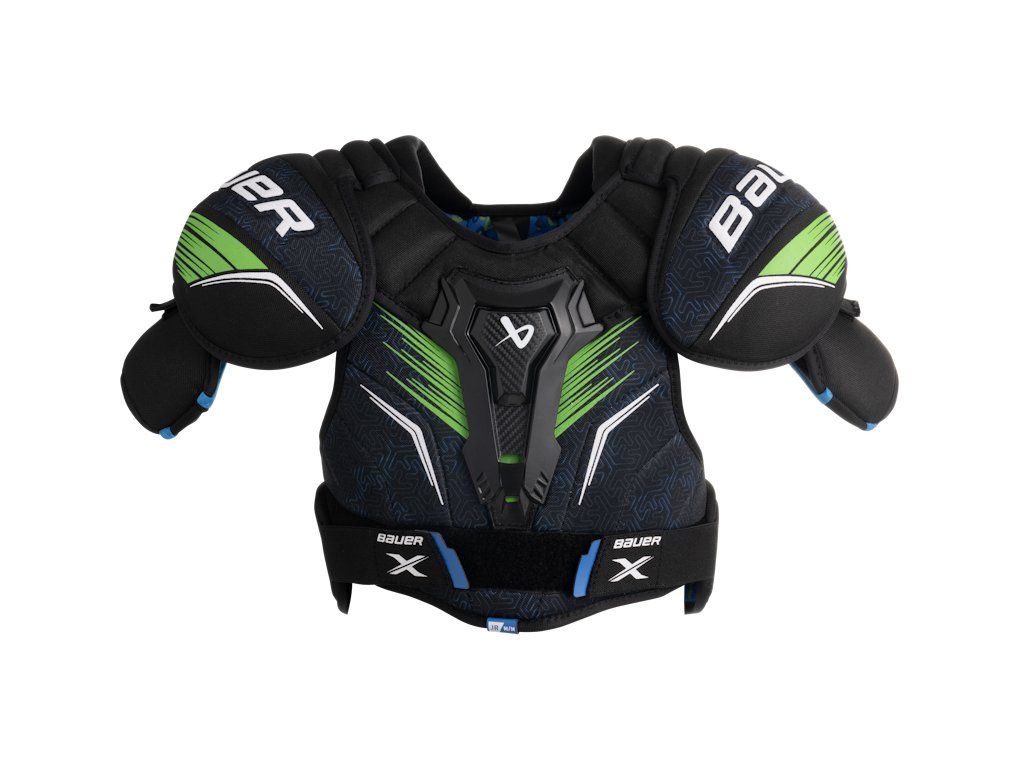 Obľúbená rada pre začínajúcich hráčov. Ešte krajší dizajn a vyššie pohodlie. Rada Bauer X je ideálnou voľbou pre amatérskych hráčov alebo do mládežníckych kategórií. Nová vesta modelu Bauer X ma vylepšený chránič hrudnej časti aby vás ešte viac chránila a zároveň je vesta vyrobená tak aby vám nič nebránilo v pohybe. Výhodou novej rady Bauer X je nízka cena a výber z každej veľkostí.Dodatočné parametre