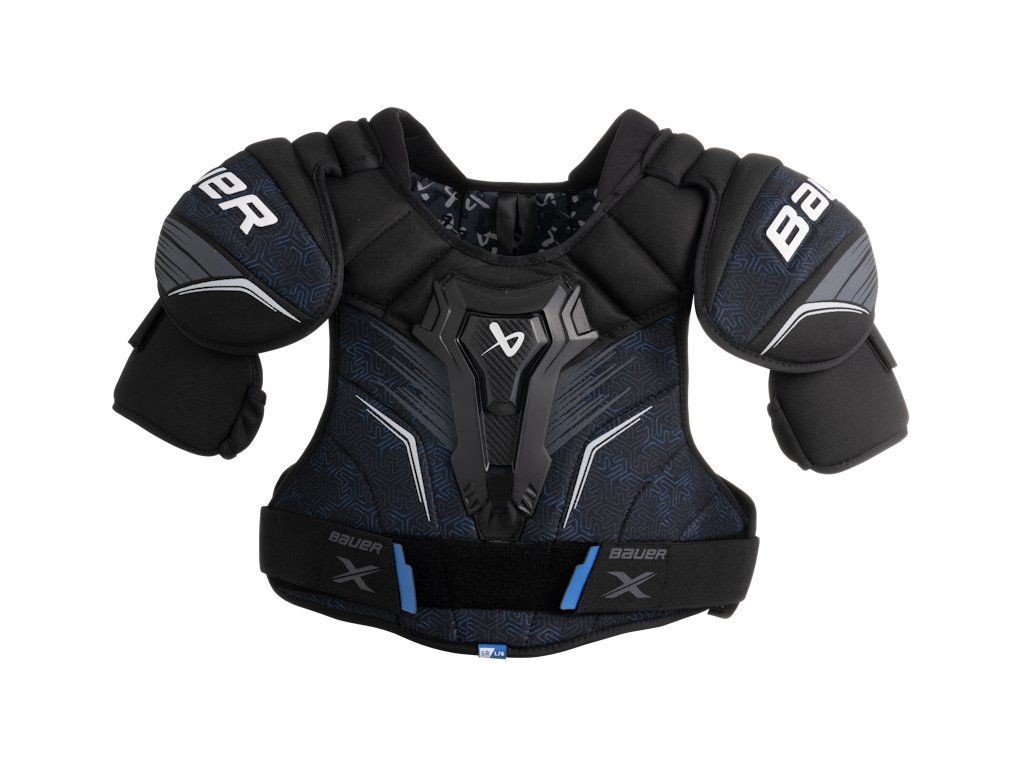 Obľúbená rada pre začínajúcich hráčov. Ešte krajší dizajn a vyššie pohodlie. Rada Bauer X je ideálnou voľbou pre amatérskych hráčov alebo do mládežníckych kategórií. Nová vesta modelu Bauer X ma vylepšený chránič hrudnej časti aby vás ešte viac chránila a zároveň je vesta vyrobená tak aby vám nič nebránilo v pohybe. Výhodou novej rady Bauer X je nízka cena a výber z každej veľkostí.Dodatočné parametre