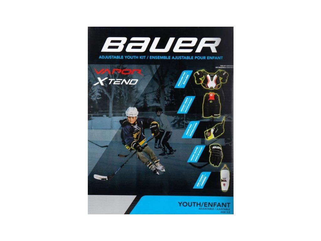 Nový detský Vapor Xtend Kit je najideálnejšou voľbou pre najmenších začínajúcich hokejistov. Set je pre deti od 3 do 9 rokov. Novinkou sú jednoducho nastaviteľné časti výstroja. Každú jednu časť dokážete manuálne zväčšiť a prispôsobiť. Staré sety vo veľkostiach S M L sú už minulosťou. Teraz máte všetky 3 veľkosti v jednom sete. Set sa predáva bez tašky.Dodatočné parametre