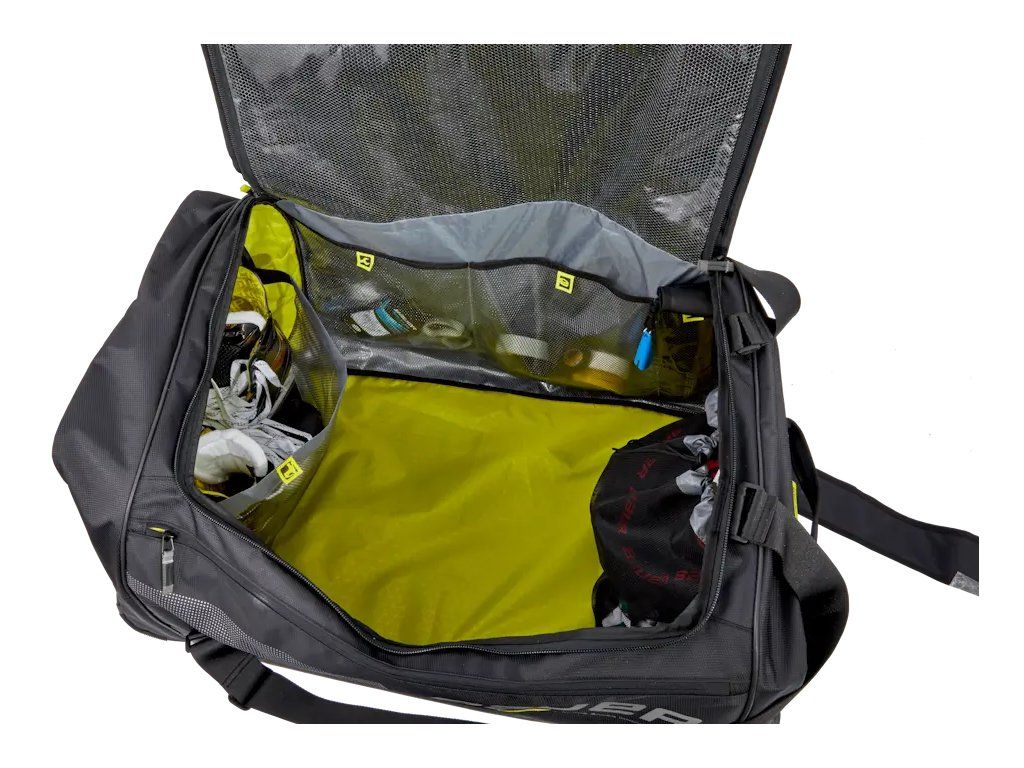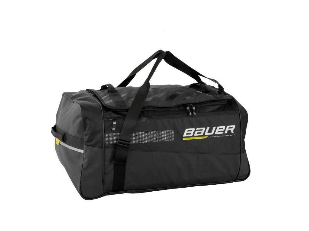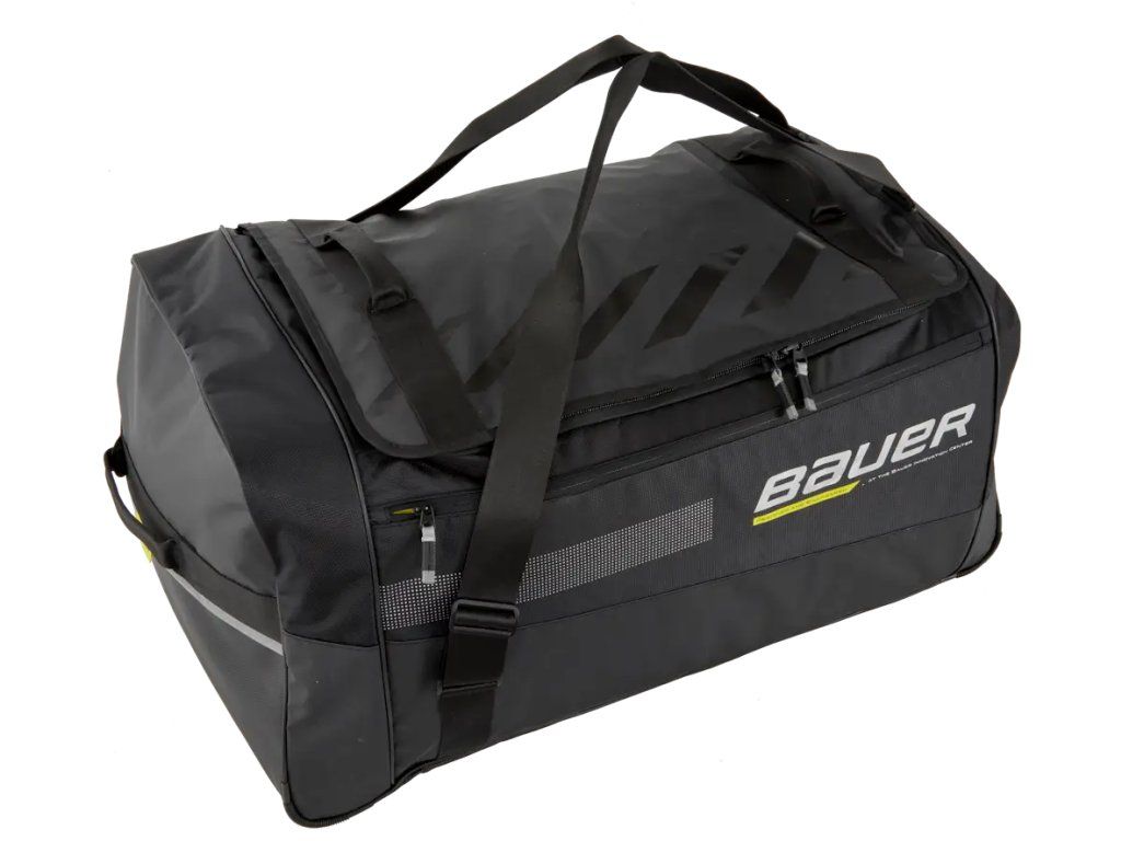Bauer Elite Carry Bag je prémiová hráčska taška bez koliesok, určená pre náročných hokejistov, ktorí očakávajú kvalitu, odolnosť a funkčný dizajn. S dôrazom na detail a použitie kvalitných materiálov ide o ideálnu voľbu pre hráčov, ktorí trávia veľa času na štadióne a chcú sa spoľahnúť na svoju výstroj – aj počas cestovania. ✅ Odolný materiál: Taška je vyrobená z vysoko odolného 840D/600D polyesteru s ripstop technológiou, ktorý zabraňuje roztrhnutiu a zaručuje dlhú životnosť. ✅ Pevné, vodeodolné dno: Chráni výstroj pred vlhkosťou a znečistením – ideálne aj pre použitie v menej čistom prostredí šatní alebo vonku. ✅ Ventilačné panely: Sieťované časti na bokoch umožňujú lepšie odvetrávanie a odvádzanie vlhkosti z výstroje. ✅ Priestranný dizajn: Hlavný priestor bez prepážok ponúka dostatok miesta na kompletnú výstroj vrátane chráničov, prilby a korčúľ. ✅ Pohodlné nosenie: Dvojité rukoväte s polstrovaním a bočné madlá pre jednoduchšiu manipuláciu. ✅ Čistý a profesionálny vzhľad: Elegantný čierny dizajn s decentným logom Bauer a modernými detailmi. Rozmery: 91 × 48 × 40 cmDodatočné parametre
