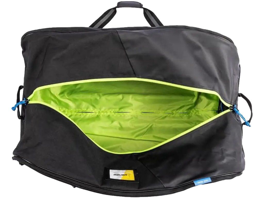Bauer Premium Wheel Bag 2024 vo verziách Senior a Junior je špičková hráčska taška s kolieskami, ktorá ponúka výnimočnú odolnosť, priestrannosť a komfort pri preprave hokejovej výstroje. Ideálna pre hráčov, ktorí chcú spoľahlivý a praktický doplnok na tréningy, zápasy aj turnaje. ✅ Robustné kolieska a teleskopické madlo: Uľahčujú manipuláciu a prepravu tašky na rôznych povrchoch bez námahy. ✅ Veľký hlavný priestor: Ponúka dostatok miesta na kompletnú výstroj vrátane prilby, chráničov, korčúľ a ďalších doplnkov. ✅ Prémiový materiál: Vyrobená z odolného 840D/600D polyesteru s ripstop technológiou pre maximálnu odolnosť proti oderu a roztrhnutiu. ✅ Spevnené, vodeodolné dno: Chráni výstroj pred vlhkosťou a znečistením, zvyšuje životnosť tašky. ✅ Ventilačné panely: Sieťované bočné časti zabezpečujú optimálne odvetrávanie a pomáhajú udržať výstroj suchú a bez zápachu. ✅ Praktické bočné a predné vrecká: Na uloženie menších vecí, občerstvenia alebo osobných doplnkov. ✅ Elegantný dizajn: Čierna farba s decentným logom Bauer a detailmi série Premium, ktoré zdôrazňujú prémiový charakter tašky. Rozmery: Senior: 90 × 48 × 40 cm / Junior: 75 × 40 × 35 cmDodatočné parametre